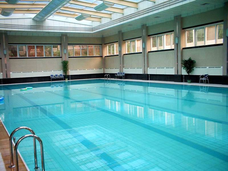 三、裝飾材料:由于游泳池室內(nèi)濕度較大,各種飾面材料應(yīng)慎重選用,墻面宜用淺色大理石或釉面磚,而不宜用油漆或涂料,地面宜用防滑地磚,切忌用花崗巖;天花板宜用鋁板或鋁塑板,避免使用木質(zhì)材料。屋頂網(wǎng)架設(shè)計應(yīng)考慮2點:一是網(wǎng)架應(yīng)便于今后防腐處理,高檔泳池可用不銹鋼網(wǎng)架;二是網(wǎng)架玻璃應(yīng)能清洗,尤其是公路邊的建筑,大面積的玻璃十分易積塵。水下部分的進(jìn)出水口、爬梯等應(yīng)用不銹鋼制品;溢水溝蓋板常用塑料格柵,但這種格柵清洗十分困難。
