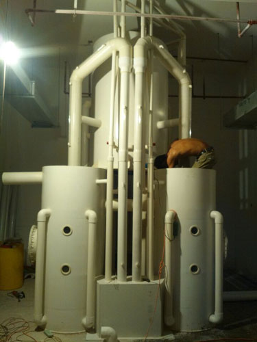 泳潔又一工程正在開工,工人為了能夠到達客戶預期指定的時間開業,工人們正在加班安裝重力式泳池設備,從圖片看中不難看出,此泳池主要是利用重力式游泳池循環過濾設備及自動加藥裝置。