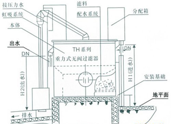 2、按水流在過濾器內的水流狀態可分為“重力流過濾器”和“壓力流過濾器”。