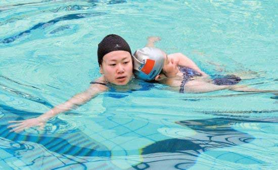有時(shí)因未掌握好游泳的呼吸動(dòng)作,會(huì)發(fā)生嗆水。嗆水時(shí)不要慌張,調(diào)整好呼吸動(dòng)作即可防止繼續(xù)嗆水。如發(fā)生在深水區(qū)又自覺身體十分疲勞不能再游時(shí),也可呼叫旁人幫助上岸休息。