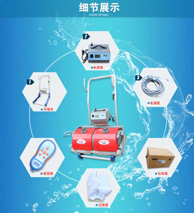 作為合格的水質管理員應知道泳池水處理中有一項池底清潔處理工作必須用到游泳池吸污機,也叫水下吸污機,水龜等,主要針對池水中的皮屑、頭發、樹葉、塵埃等臟物進行清潔,使水清澈透明。