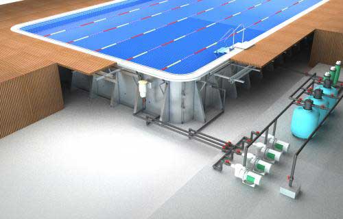 泳池配備專業(yè)水處理 凈化循環(huán)系統(tǒng),出水水質高。維護泳池非常方便。